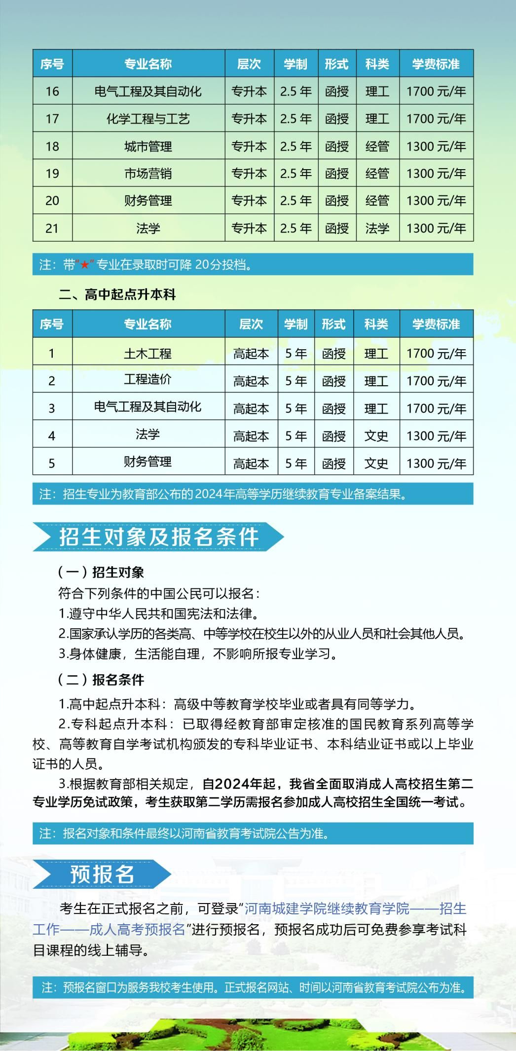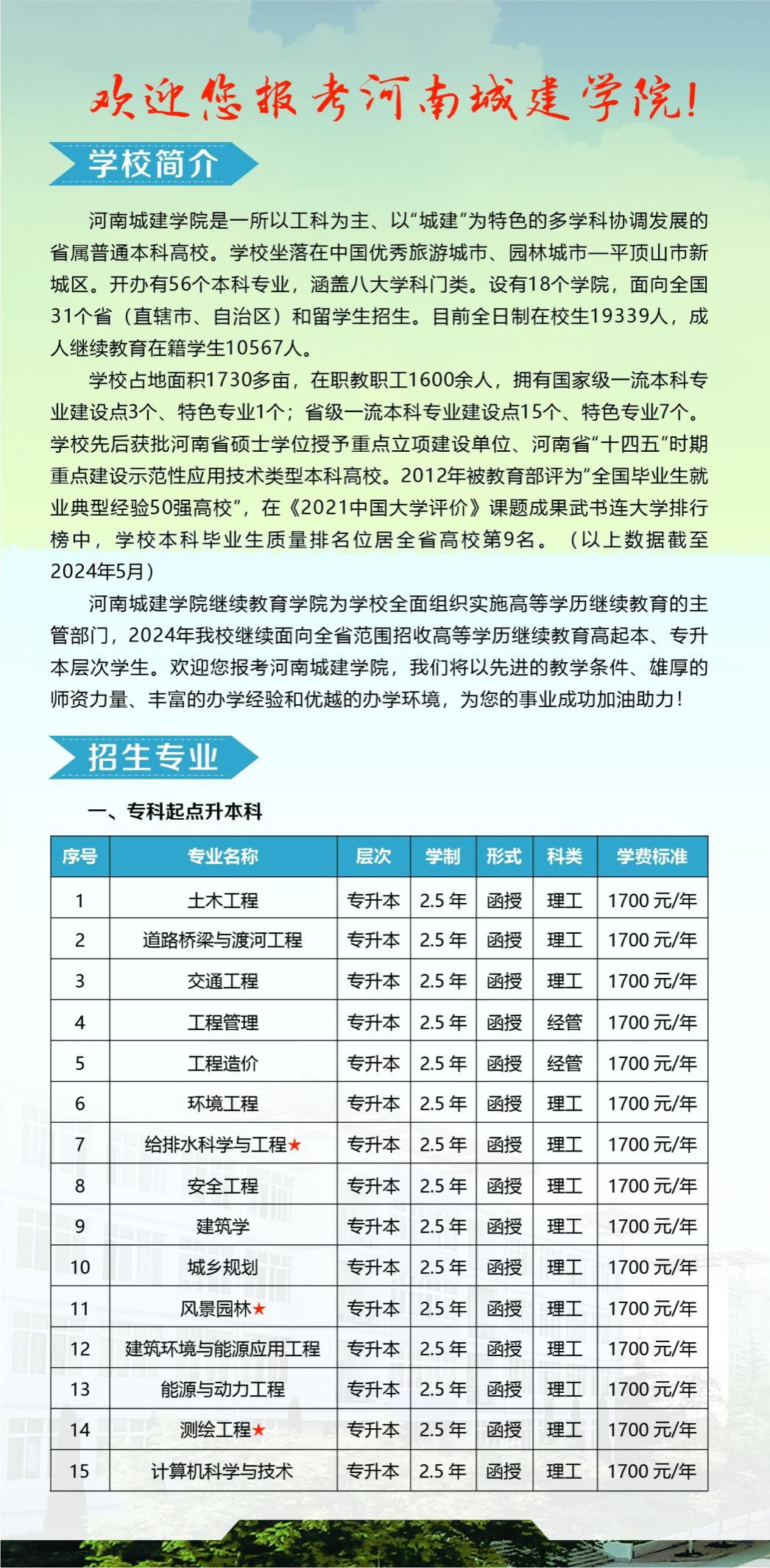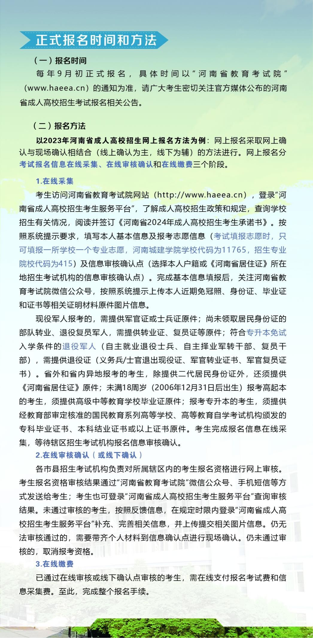 四、beat365中文官网高等学历继续教育招生信息以河南省教育厅、河南省教育考试院、beat365中文官网官网发布的招生信息为准。2024年beat365中文官网高等学历继续教育拟招专升本层次21个专业、高起本层次5个专业。(详见后附2024年招生简章)