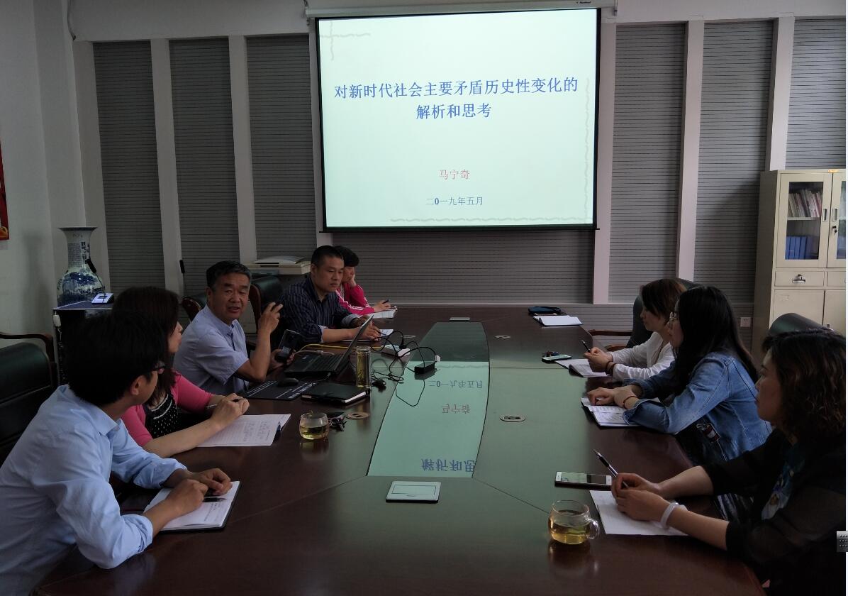 5月14日下午,beat365中文官网在2号教学楼A310会议室举办第二季度党课活动。党支部书记、经理马宁奇做了题为《对新时代社会主要矛盾历史性变化的解析和思考》党课讲座,公司全体教职工参加本次党课学习。