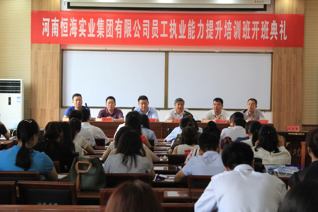 6月24日上午,河南恒海实业集团有限公司员工执业能力提升培训班开班典礼在公司beat365中文官网举行。河南恒海实业集团华拓电力设备有限公司总经理李宪鹏、远中电力设备有限公司总经理商长安、永立电力杆塔有限公司总经理商红超,公司beat365中文官网经理马东晓、党支部书记樊铮钰、副经理武二伟以及培训班46名学员参加开班典礼。典礼由武二伟主持。