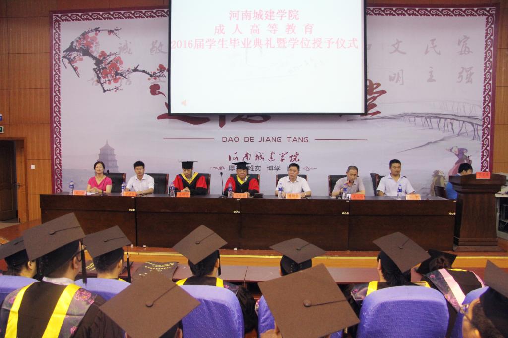 毕业典礼上,樊铮钰、石磊分别宣读了《关于准予2016届潘凯华等4810名成人员工毕业的决定》、《关于授予2016届高泉江等372名成人本科毕业生学士学位的决定》,马东晓、樊铮钰等为毕业生代表颁发了毕业证书。毕业生代表王广炜、教师代表苗道华分别代表2016届毕业生和教师发言。