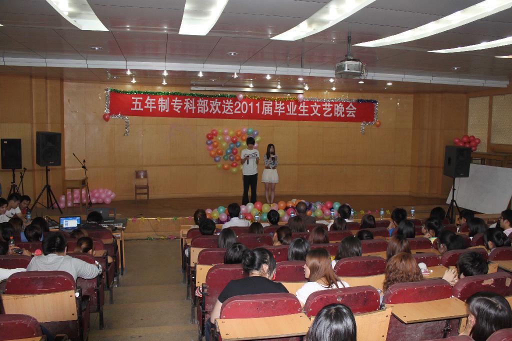 5月23日晚,五年制专科部举办了2011届送毕业生晚会,beat365中文官网副经理李高平,该院团总支、学工办负责老师、各年级辅导员和近200名毕业生观看了晚会。