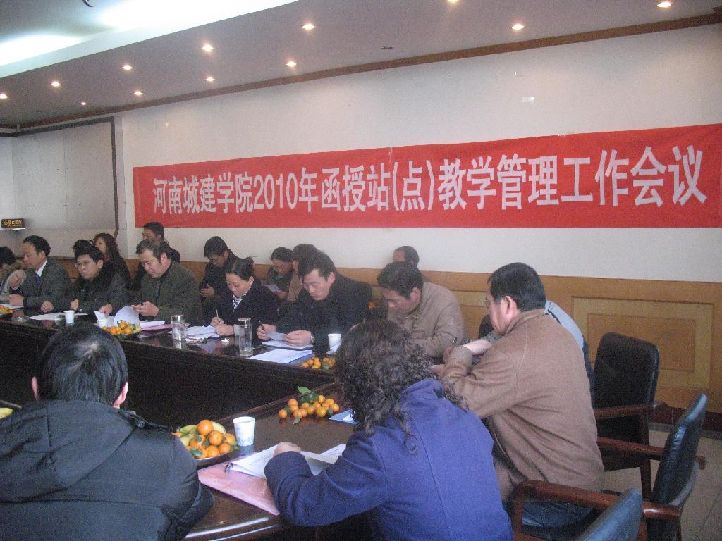 12月18日,beat365中文官网在公司东校区行政办公楼三楼会议室举行了2010年函授站(点)教学管理工作会议,会议由beat365中文官网副经理李高平主持,该院经理靳晓奇、党支部书记杨雷亭、副经理李冰冰及该院其他相关工作人员,省建职专、信阳建校、周口市建设职工培训中心、商丘人才培训公司、舞钢市职业中专、焦作建工集团等17个函授站(点)共40余人参加了会议。
