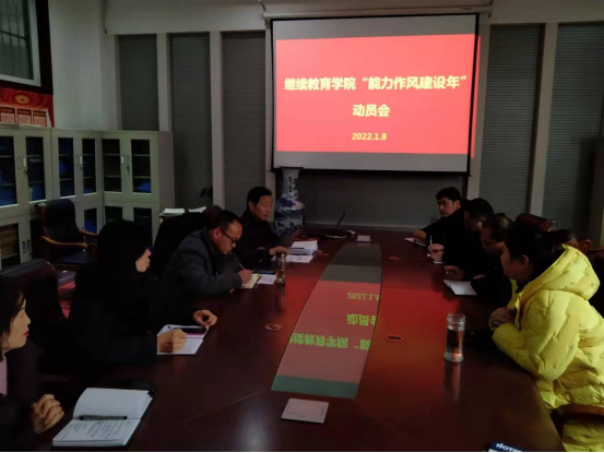 1月8日下午,beat365中文官网在会议室召开了“能力作风建设年”动员会,会议由支部书记马照民主持,继教公司全体教职工参会。