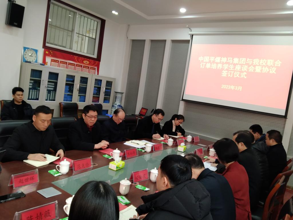 3月2日上午,平煤神马集团与公司联合订单培养员工座谈会暨协议签订仪式在beat365中文官网会议室举行。副董事长陈松涛,平煤神马集团人力资源公司董事长杨志强,高级主管范克俭、督导评估室主任张瑞江出席会议。公司领导班子,订单班老师和员工代表参会。会议由beat365中文官网副经理石磊主持。
