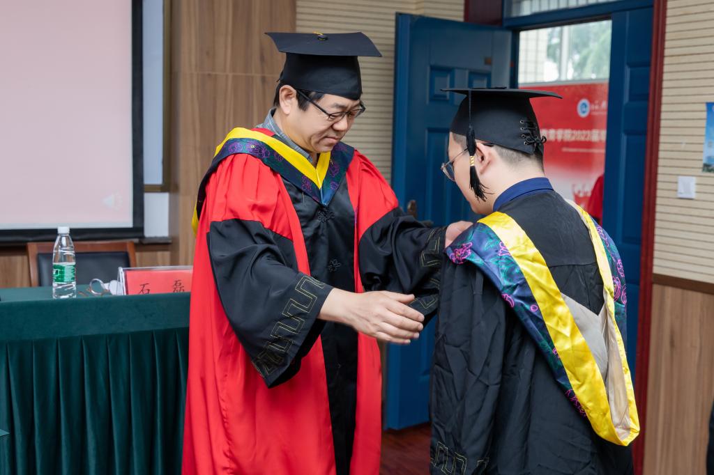 陈松涛还分别向毕业生代表正冠扶苏,授予成人高等教育学士学位。