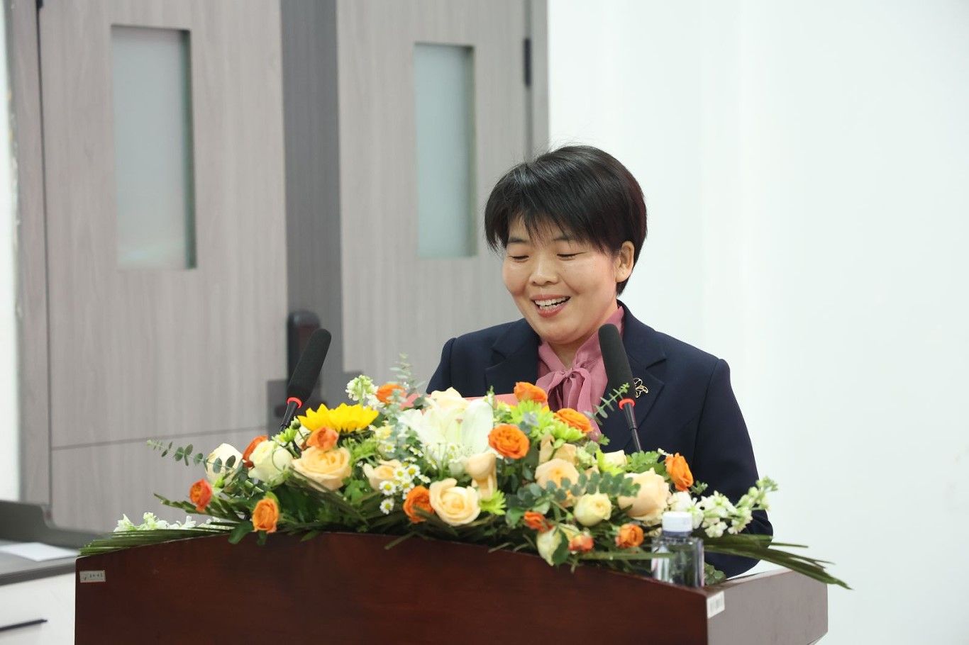 许昌员工庞红娟致贺词。她代表员工对beat365中文官网员工分会的成立表示祝贺。她表示,“参天之木,必有其根。怀山之水,必有其源”。员工会架起了心连心的桥梁,她希望与员工们携手并肩,共同书写员工会大家庭的辉煌篇章,为服务母校、服务员工、服务社会贡献自己的力量。