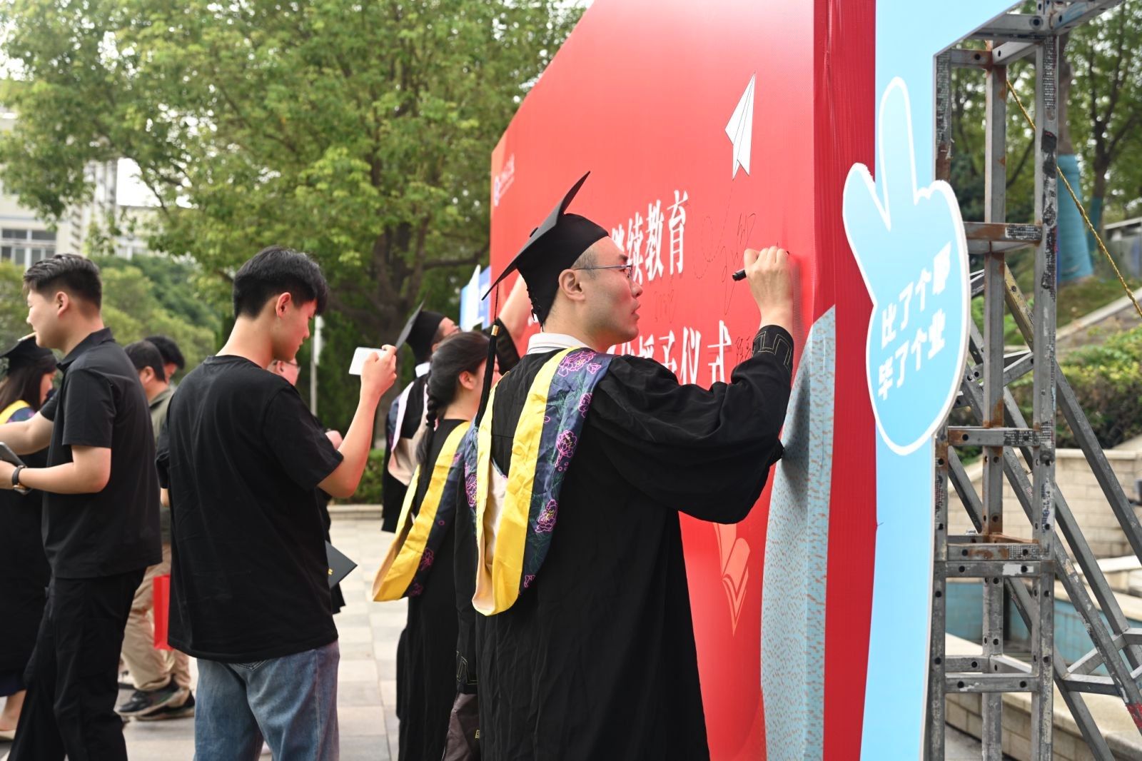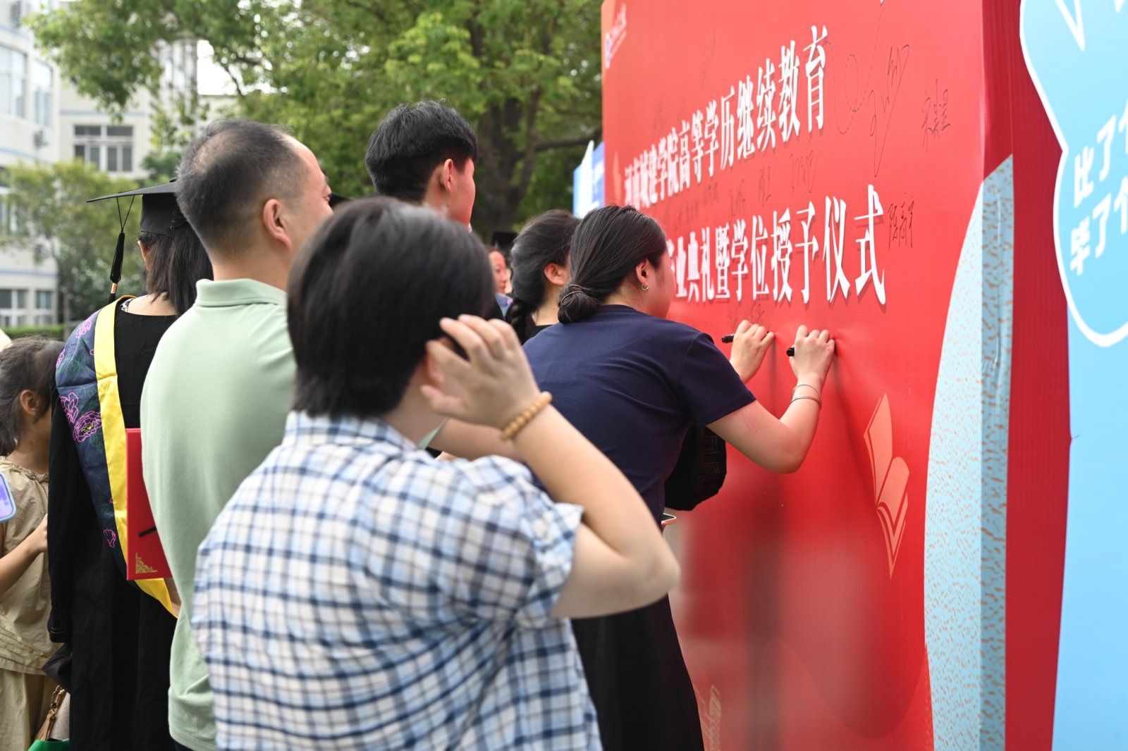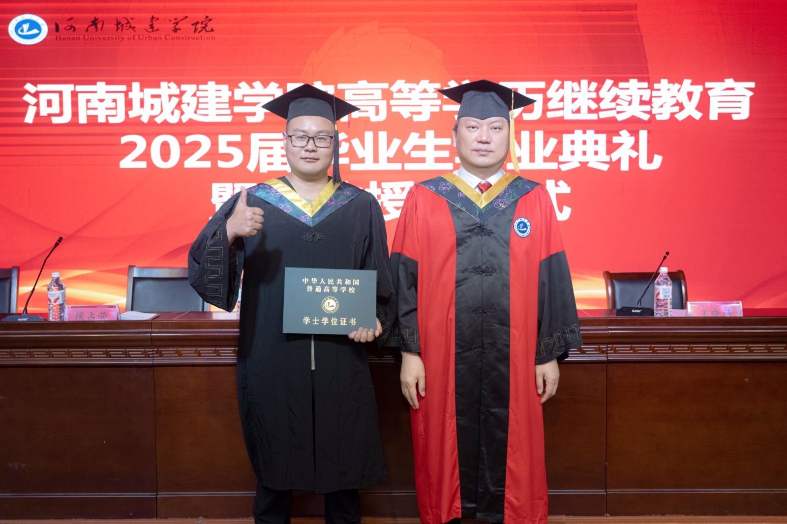 孙玉周分别向毕业生代表正冠拨苏,授予高等学历继续教育学士学位。