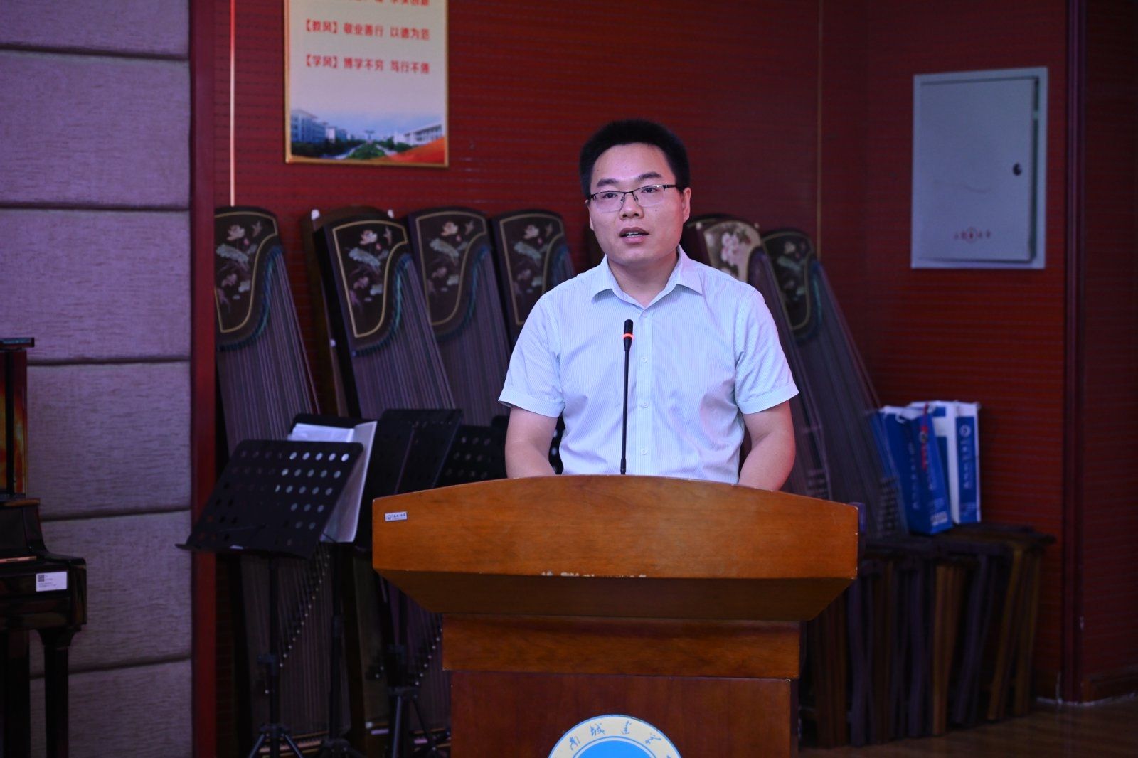 beat365中文官网直属党支部书记殷战稳宣读《beat365中文官网关于授予宋博等130名成人高等教育本科生学士学位的决定》。