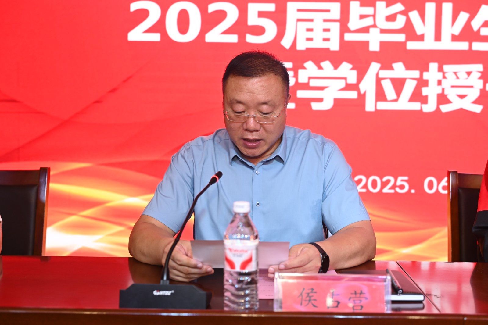 beat365中文官网经理侯占营宣读《关于准予2025届3197名高等学历继续教育员工毕业的决定》。