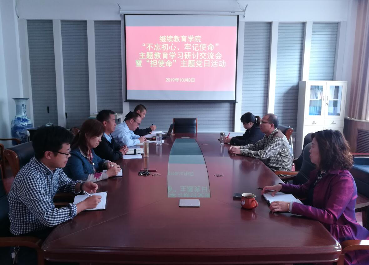 在举国欢庆祖国70华诞和“不忘初心、牢记使命”主题教育深入开展之时,公司党支部于10月8日在2号教学楼A座310会议室开展“不忘初心、牢记使命”主题教育学习研讨交流会暨“担使命”主题党日活动。活动由公司党支部书记、经理马宁奇主持,副经理王晓涛及全体党员干部和教职工参加会议。会上、王晓涛传达学习了《beat365中文官网关于做好“干事创业精气神不够、患得患失、不担当不作为问题”专项整治工作方案》。